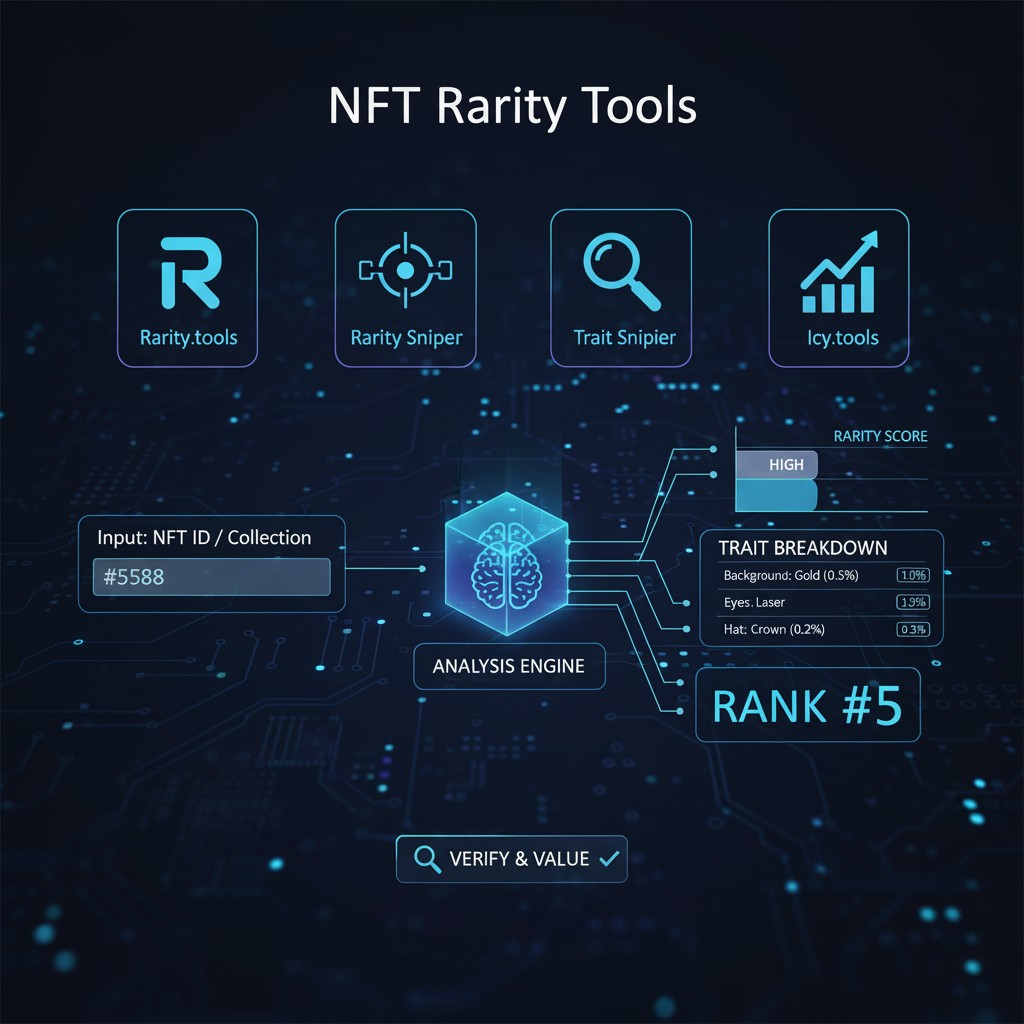 خوشبختانه، نیازی نیست این محاسبات پیچیده را به صورت دستی انجام دهید. پلتفرمها و ابزارهای متعددی توسعه یافتهاند که به طور خودکار فراداده یک مجموعه را تحلیل کرده و رتبهبندی کمیابی را در اختیار شما قرار میدهند. استفاده از این ابزارها برای هر سرمایهگذار جدی NFT یک ضرورت است.