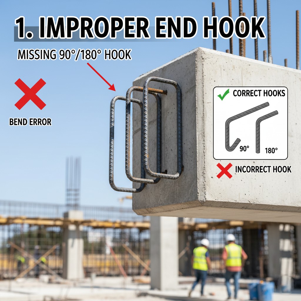 ۱. عدم اجرای صحیح خم و قلاب انتهایی میلگردها
