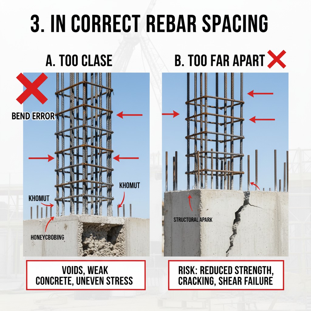 اشتباهات رایج در فاصله گذاری آرماتورها: