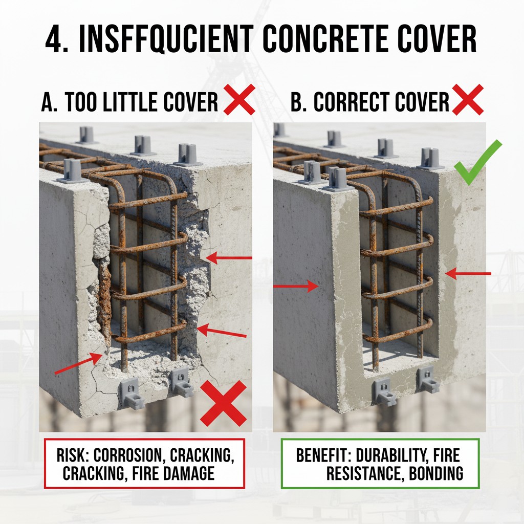 ۴. عدم توجه به پوشش بتنی کافی (Concrete Cover)
