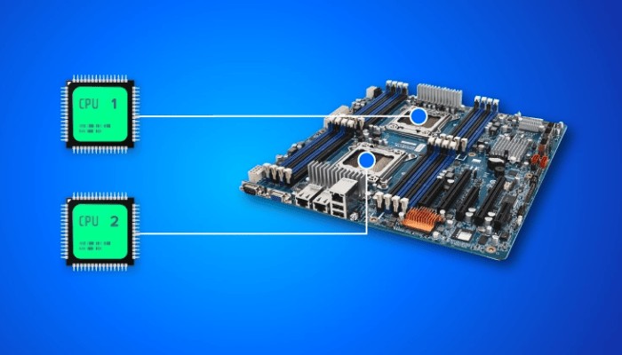 نوع دیگری از معماری چند پردازندهای است که در آن چند پردازنده فیزیکی (هر کدام با یک یا چند هسته) در یک سیستم به کار گرفته میشوند. این سیستم معمولاً در سرورهای بزرگ به کار میرود. فناوری چندپردازندهای توانایی اجرای مستقل چند برنامه بهطور همزمان را فراهم میکند؛ ولی هزینه و مصرف توان آن بسیار بیشتر است.